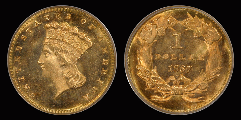 G $1 1867 PCGS MS67