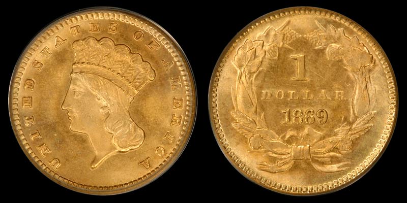 G $1 1869 PCGS MS66