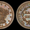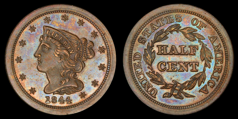 Outstanding mirrors are super clean, crystal clear, clean, and have bold reflectivity. Totally ORIGINAL beautiful colors of pale brown/light blue/gold/faded red swirl all over. Miss Liberty and the details are needle sharp in strike and boldly stand out. The eye appeal is fantastic! Here is a brief copy of how Goldberg described the coin: “Attractive golden light brown with blue steel overtones and faded mint red in protected areas on the obverse. The fields are highly reflective with deep mirrors on the obverse, moderate to deep mirrors on the reverse. Flawless except for a thin, very light contact mark in the field close over star 1.”. You really won’t find a better 1844!