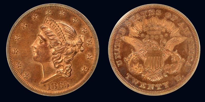 J-0453 $20 1865 PCGS PR63RB