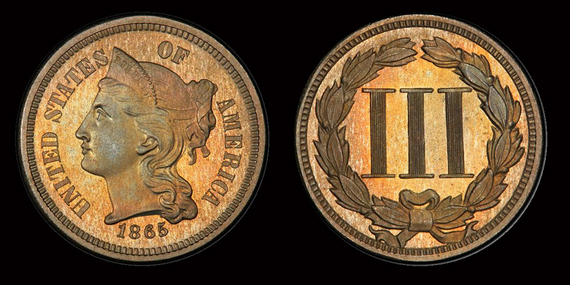 J- 410 3CN 1865 PCGS PR66 DENALI COLLECTION