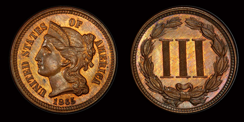 J- 413 3CN 1865 PCGS PR64RB DENALI COLLECTION