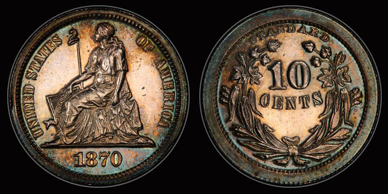 This is a R7 (4-12 minted). It is test design of the Seated Standard Silver design. The coin is close to full PR65!