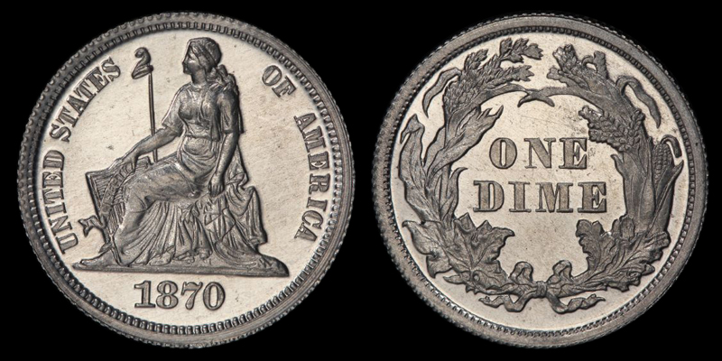 J- 835 10C 1870 PCGS PR66+ CAMEO