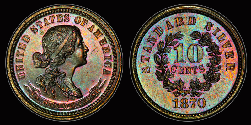 PCGS 2, NGC 0, CAC 0. There are NO auction records for this date. According to the Judd book, the last time one of these traded was back in 1977! In PR63 the Judd book values one at $6,900.00 and in PR65 $12,000.00. We know this coin is priced really right even with out those numbers. Here is a perfect example of a coin rarer than a 1894S 10S that has actually appeared LESS and is priced for a fraction of a %. How can you beat that? This coin is NOT CAC’d.