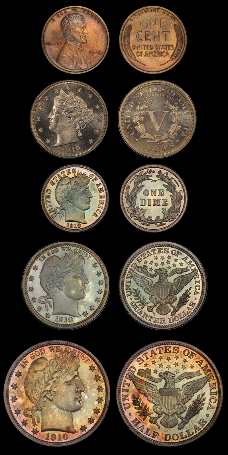 What a wonderful totally MATCHED ORIGINAL set. We consider sets like this to be “the last frontier” in numismatics. There could never be more then 551-thats how many PR coins were minted for the Barber series in 1910.