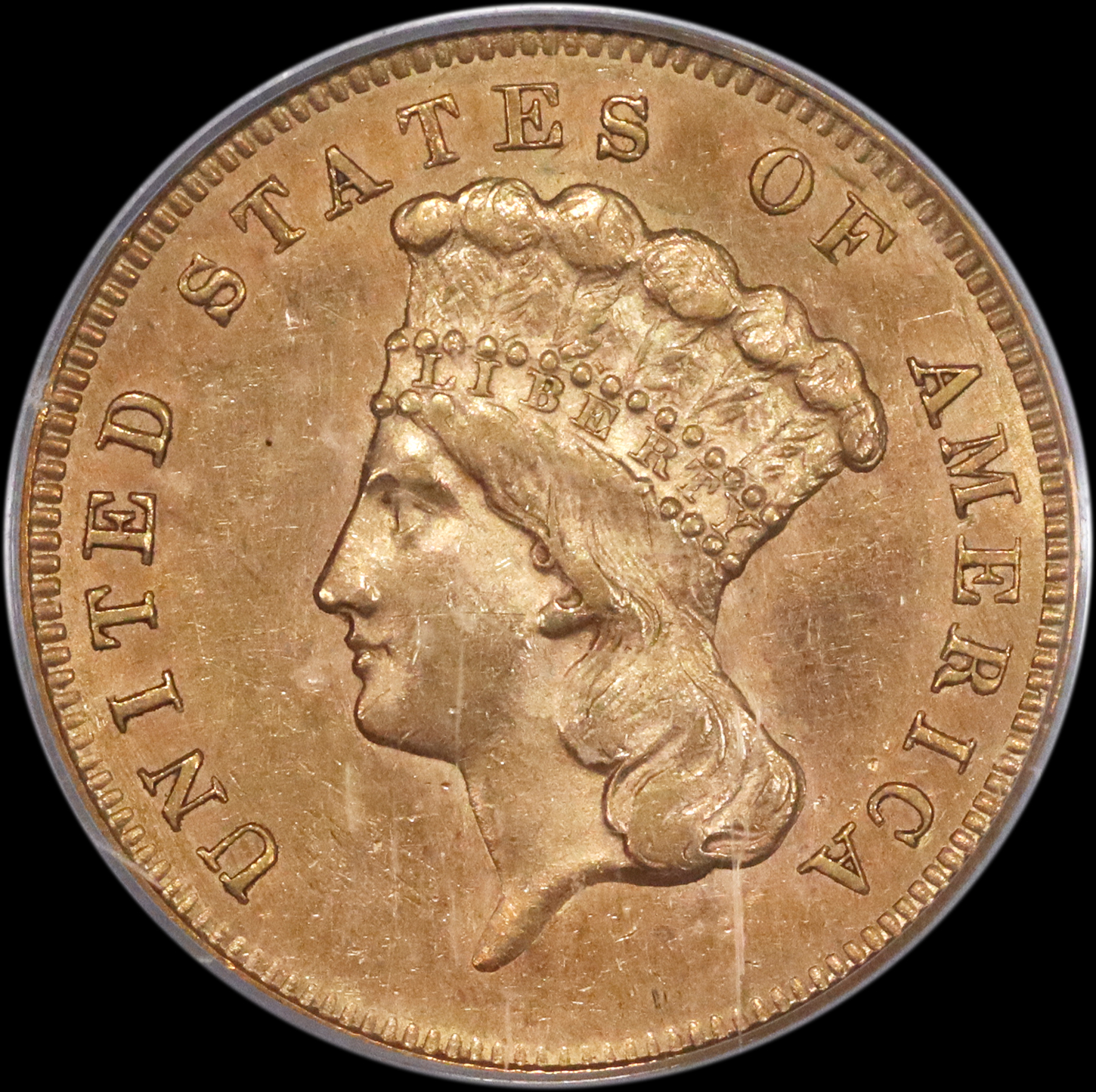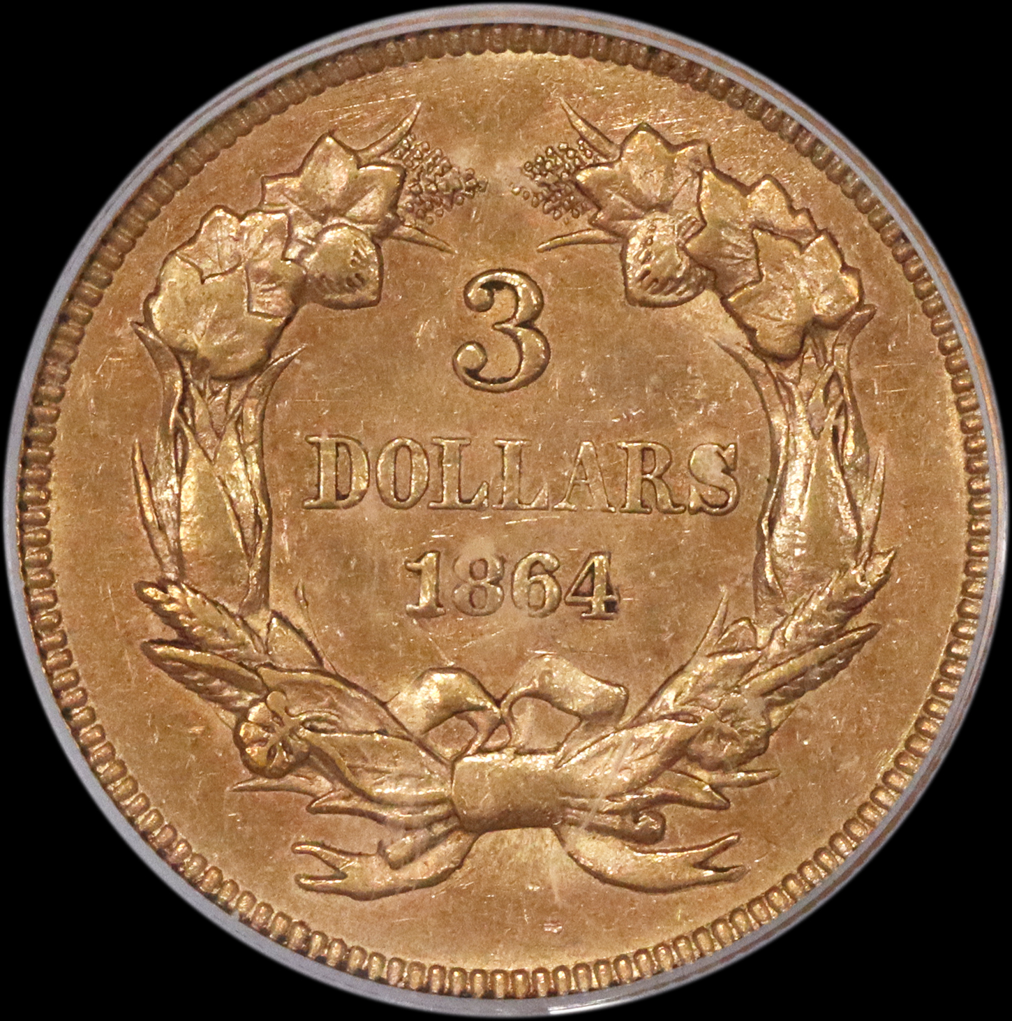 1864 $3 Gold PCGS AU55 (CAC) A SUPERB GEM AU!
